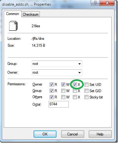 Når filene er på ruteren, må vi gjøre dem kjørbare ved å velge dem (bruk igjen "sett inn") høyreklikk og deretter "egenskaper".