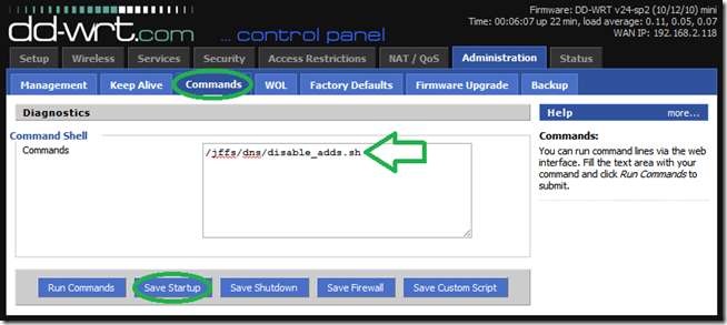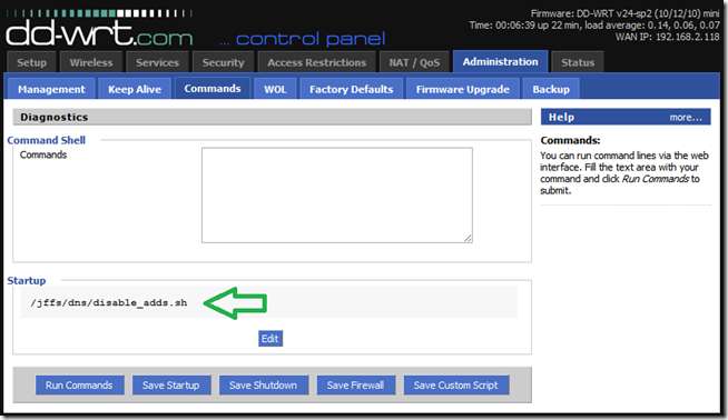 Nå som scenen er satt, kan vi fortelle ruteren å kjøre det ad-blokkerende skriptet ved oppstart.