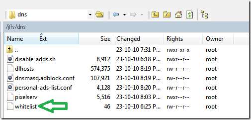 For å bruke den, om nødvendig, bruk favoritt teksteditoren din til å justere IP-en til pikselserveren (de samme begrensningene som ovenfor gjelder her). Kopier det bare til katalogen “/ jffs / dns” som du har de andre filene. Når den er der, kan du bruke winSCP til å redigere den og legge til domener.