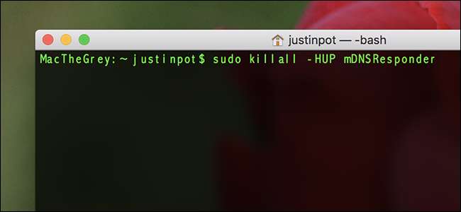 For å tømme DNS-hurtigbufferen på din Mac, åpne Terminal, som du finner i Programmer> Verktøy eller ved å søke med Spotlight, og kjør deretter følgende kommando: