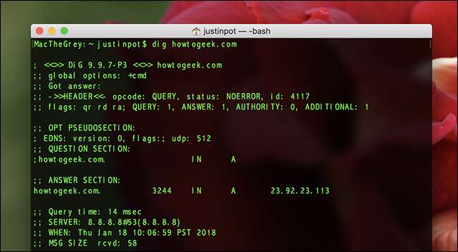 I “Svar-delen” av resultatene ser du IP-adressen som datamaskinen din kjenner til nettstedet.