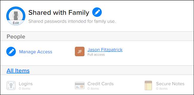 Hvis du leter etter et system der ett familiemedlem er utpekt som administrator og har en mer aktiv rolle i å kontrollere kontoene til andre familiemedlemmer, så 1Passordfamilier er det beste alternativet. AgileBits, selskapet bak 1Password, har gjort en fantastisk jobb med å ta de beste aspektene av deres passordadministrasjonspakke, 1Password Teams, og tilpasse den for familielivet.