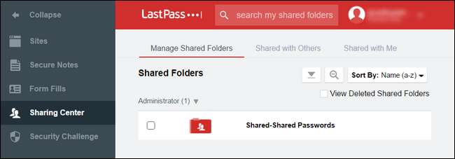 Mens du er logget på LastPass-kontoen din via det nettbaserte grensesnittet, velger du "Delsenter" fra menyen til venstre.