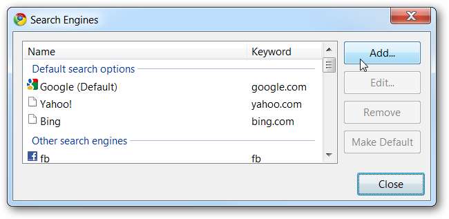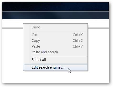 Du starter med å høyreklikke på stedslinjen og velge Rediger søkemotorer ...
