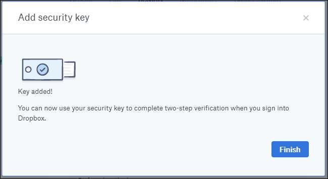 Neste gang du logger på Dropbox, blir du bedt om å sette inn USB-sikkerhetsnøkkelen og trykke på knappen. Hvis du ikke har det, eller nettleseren din ikke støtter det, kan du bruke en kode som er sendt til deg via SMS eller generert av en mobilautentiseringsapp i stedet.