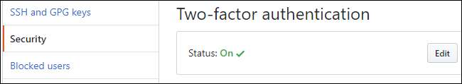 For å sikre GitHub-kontoen din med en sikkerhetsnøkkel, gå til nettstedet GitHub , logg på og klikk på profilbildet øverst til høyre på siden. Klikk på "Innstillinger" og deretter på "Sikkerhet." Du kan også Klikk her for å gå rett til sikkerhetssiden.