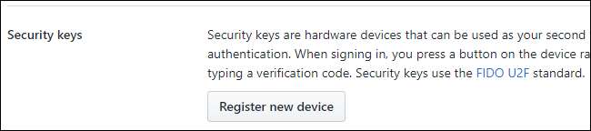 På konfigurasjonssiden for tofaktorautentisering, bla ned til bunnen og klikk på "Registrer ny enhet" under Sikkerhetsnøkler.