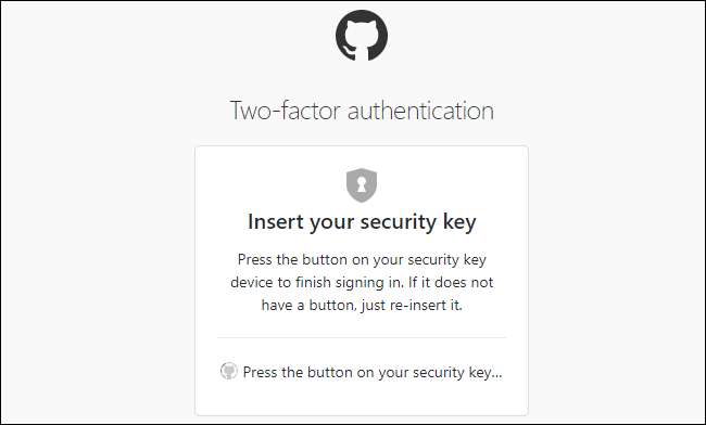 Du blir bedt om å sette inn nøkkelen og trykke på knappen på den hver gang du logger på GitHub. Hvis du ikke har det, SMS-godkjenning, den kodegenererende appen eller en standard gjenopprettingsnøkkel kan alle brukes til å få tilgang til kontoen din.