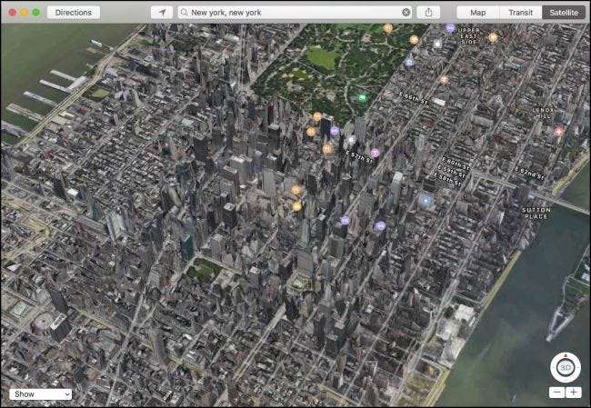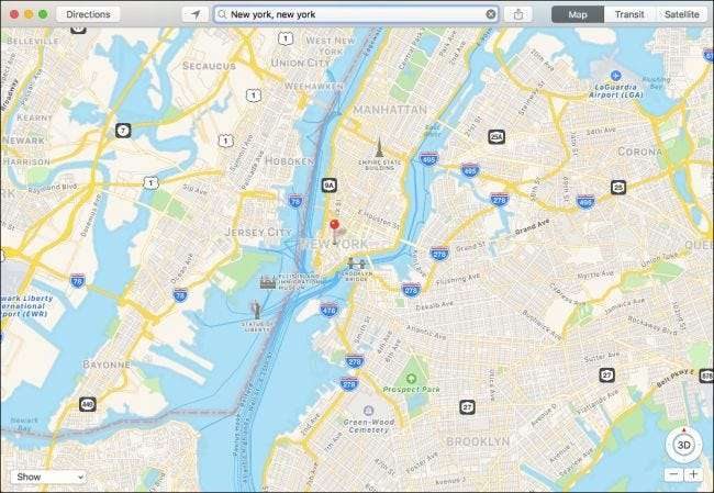 Ta en titt på macOS-versjonen av Maps. De tre modusknappene er lett tilgjengelige fra øverste høyre hjørne av applikasjonen.