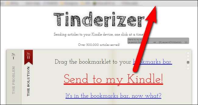 Dra den enorme "Send to my Kindle!" ved å klikke og holde nede, helt opp til nettleserens verktøylinje.