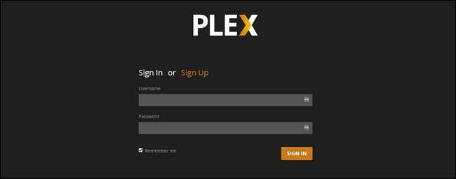 Etter at du har godtatt brukeravtalen, blir du bedt om å logge på Plex-kontoen din. Hvis du har en gammel Plex-konto fra tidligere eksperimenter med plattformen, logger du på. Ellers klikker du på "Registrer deg" -linken og registrerer deg for en ny konto.