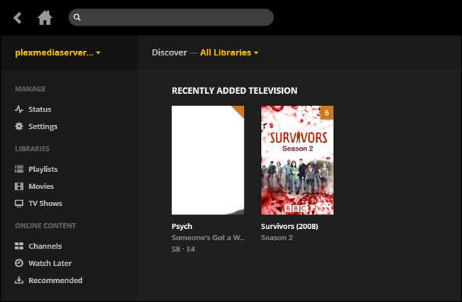 På dette tidspunktet har vi gjort det alle hardt arbeid (og det var ikke engang så vanskelig). Når du har den faktiske Plex-medieserveren i gang, er den helt jevn. Hvor glatt? Fordi hele biblioteket ditt er lagret på en sentral server, kan du enkelt benytte deg av det fra hvilken som helst datamaskin, smarttelefon eller annen enhet og få nøyaktig samme opplevelse - det samme mediet, de samme metadataene, den samme listen som nylig ble lagt til, den samme databasesporingen hva viser du har sett på og hvilke du må ta igjen.