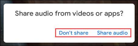 Til slutt kan du velge om du også vil dele lyden fra videoer eller apper på skjermen. Trykk på "Ikke del" eller "Del lyd."
