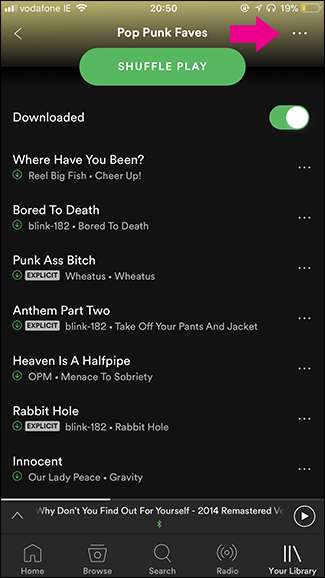 For å gjøre en spilleliste offentlig gjennom Spotify, trykk eller klikk på de tre små prikkene og velg Gjør offentlig. Nå vil den vises i Spotify-søk fra andre brukere.