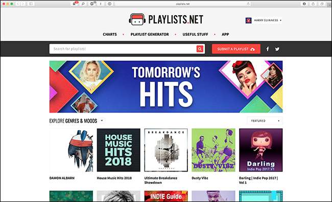 Playlists.net er akkurat hvordan det høres ut: et nettsted der folk deler spillelister. Klikk på Send en spilleliste, registrer deg med Spotify-kontoen din, og velg deretter spillelisten du vil publisere. Legg til en tittel, sjanger, beskrivelse og topptekstbilde, og klikk deretter på Send spilleliste.