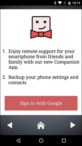 Men det er også to sider til venstre for hjemmet, som tilbyr noen mer spennende funksjoner: ekstern støtte (for venner og familie) og et "oppslagstavle." Dessverre er førstnevnte fortsatt i lukket beta, så jeg klarte ikke å teste det - etter hva jeg kan fortelle, er det imidlertid knyttet til Google-kontoen din og vil kreve en søknad i den andre enden for at vennen eller familiemedlemmet skal ta kontroll over håndsettet. Jeg lar deg bestemme hvor nyttig dette vil være, siden det avhenger av hvor ofte familiemedlemmet ditt får problemer på telefonen.