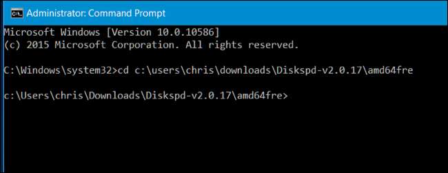 for å bytte til katalogen som inneholder Diskspd.exe du vil bruke: