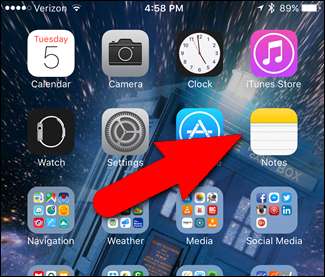 Nå, gå tilbake til startskjermen og trykk på "Notater" -ikonet for å åpne appen.