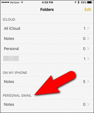 Notater opprettet i en Gmail-konto i Notes-appen blir bare synkronisert med Gmail-kontoen din, ikke med iCloud. Notater du vil sikkerhetskopiere til iCloud-kontoen din, må opprettes under iCloud-kontoen i Notes-appen. Du kan imidlertid også flytte notater fra Gmail-kontoen din til iCloud-kontoen din akkurat som du kan flytt notater fra "På min iPhone" til iCloud . Du kan også finne ut mer om ved hjelp av Notes-appen for å organisere tankene dine .