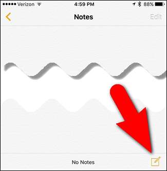 Trykk på den nye notatknappen nederst til høyre på skjermen.