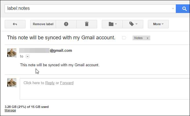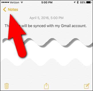 ... og notatet du slettet på iOS-enheten din, vil ikke lenger være i Gmail-kontoen din.