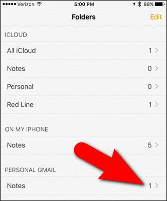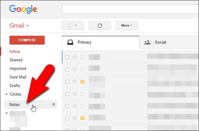 Antall notater i Gmail-kontoen din vises til høyre for Notes-mappen.