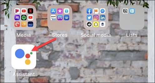 Med en iPhone eller iPad kan du trykke på Google Assistant App. [1. 3] fra startskjermbildet. Sveip ned på startskjermbildet for å bruke Apples Spotlight Search. [1. 3] Funksjonen hvis du ikke finner appen.