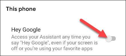 Denne siden viser alle Google Assistant-aktiverte enheter som kan oppdage stemmen din. På toppen ser du en seksjon med tittelen "Denne telefonen" (eller nettbrettet). Bare veksle bryteren for "hei Google."