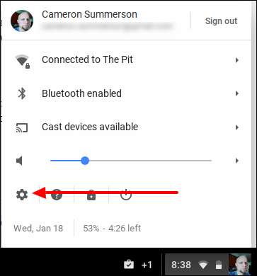 Gå videre og hopp inn i Innstillinger-menyen ved å klikke på systemstatusfeltet og velge tannhjulikonet.