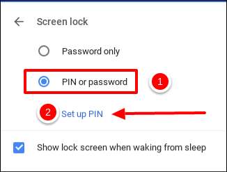 Den neste skjermen er enkel, med bare en håndfull alternativer: "Bare passord" og "PIN eller passord." Velg sistnevnte, og klikk deretter på "Konfigurer PIN-kode" for å legge inn PIN-koden du vil bruke.