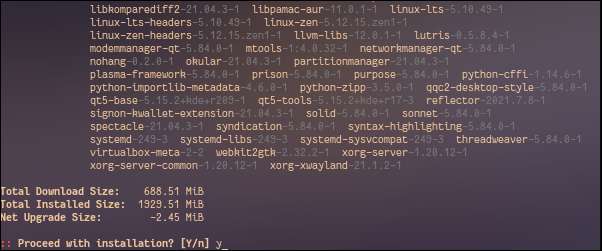 Å holde pakker oppdatert er viktig på enhver Linux distro. Arch. Fungerer på en rullende utgivelsesmodell, og leverer blødende oppdateringer til din virtuelle dør så snart de er klare. På grunn av det, hyppige oppdateringer (kombinert med Effektive sikkerhetskopier ) er nødvendig for å unngå et ødelagt system og korrupte pakker.