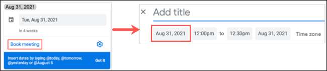 Fordelen med å bruke denne interaktive datoen i Google Docs er at det gir alle en enkel måte å planlegge en hendelse på. Klikk på "Bokmøte" i Smart Chip for å åpne Google Kalender i en ny kategori direkte til en ny begivenhet for at du skal fullføre for den datoen.
