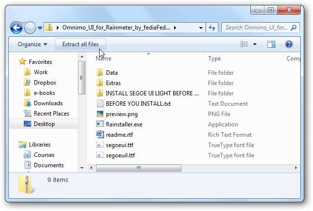 Kjør nå Rainmeter-temaoppsettet. Dobbeltklikk på Rainstaller.exe i Omnimo-mappen.