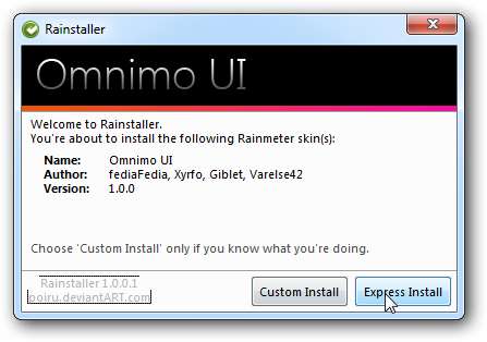 Klikk på Express installer for å legge til temaet og skinnet til Rainmeter.