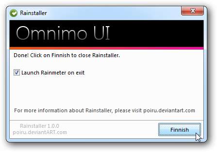Klikk Fullfør, og som standard åpner Rainmeter med det nye temaet ditt.