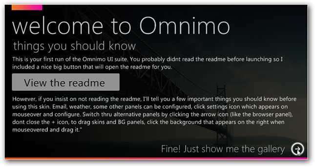 Når det nye temaet åpnes første gang, blir du bedt om å lese readme, eller bare gå til galleriet.