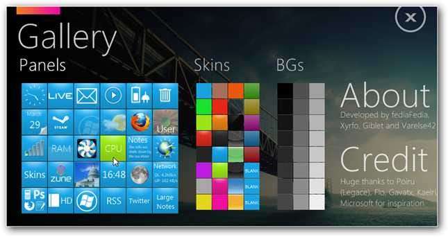 Når du åpner galleriet, kan du velge mellom et bredt utvalg av fliser og dingser å plassere på skrivebordet. Du kan også velge et annet fargevalg for flisene dine.