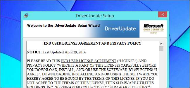 Vi har nylig sett annonser for et "Driver Update Utility" fra driverupdate.net overalt. Dette er vanligvis et dårlig tegn - vi ser også annonser for PC-rengjøringsmidler, registerrensere , spillboostere , og alle slags andre verktøy som ikke gjør noe annet enn å prøve å tjene penger på deg og installere søppel på PCen.