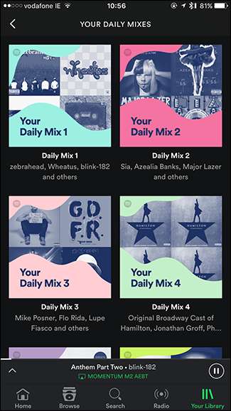 Spotifys automatisk genererte Daily Mixes, en ny funksjon de har rullet ut til sine iOS- og Android-apper, har blitt den beste måten å oppnå dette på. Slik fungerer de (og hvorfor de er bedre enn Pandora eller Beats 1).