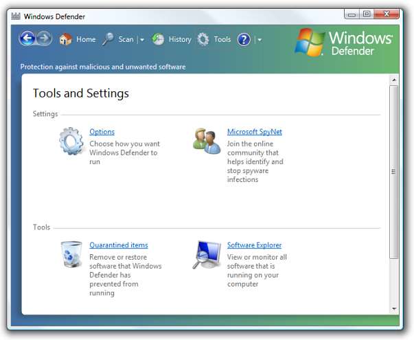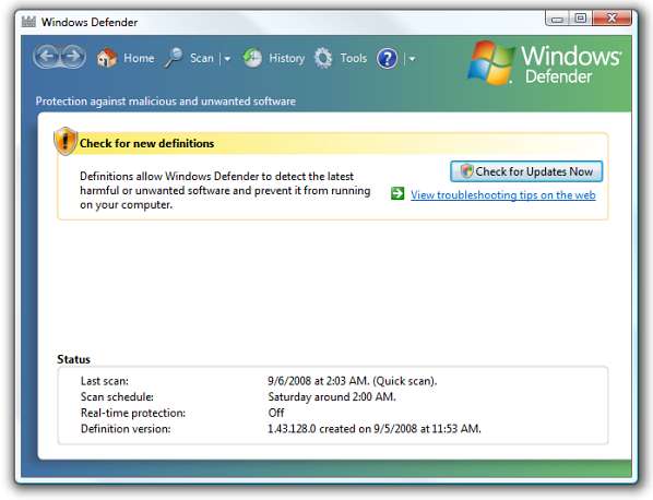 Mens vi dekker alle de gratis anti-spyware-applikasjonene, er det bare rettferdig å snakke om det helt gratis Windows Defender-verktøyet innebygd i Windows Vista og tilgjengelig som gratis nedlasting fra Microsoft for XP-brukere.