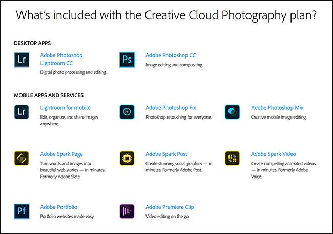 I stedet for å måtte punge ut huset ditt, kan du nå betale $ 9,99 i måneden for å registrere deg for Adobe Creative Cloud Photography-plan . De ti dollarene per måned gir deg mobilappene Photoshop, Lightroom, Photoshop og Lightroom, et hostet nettsted, et abonnement på porteføljesiden Behance og noen andre små funksjoner.