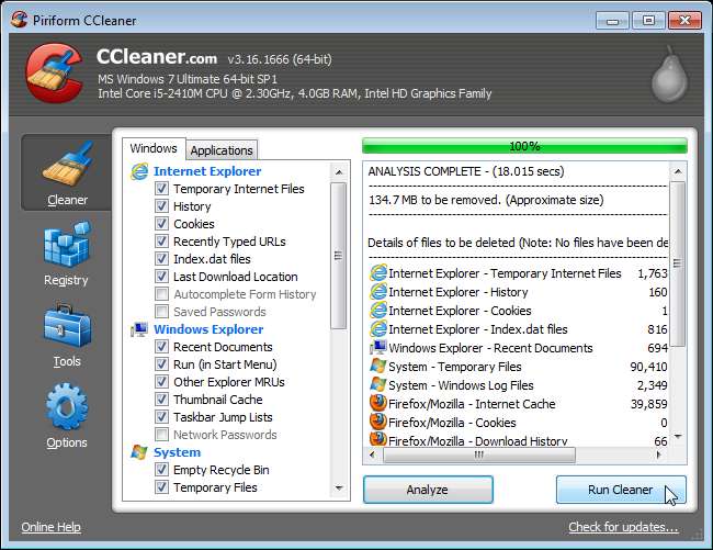 For rengjøring av Windows-PCen, CCleaner , fra Piriform, er det beste verktøyet for jobben. Det beskytter personvernet ditt på nettet og gjør datamaskinen raskere og sikrere. Den er tilgjengelig i en bærbar versjon og er enkel å bruke. Den renser filer fra nettlesere, Windows-systemet, og inkluderer en registerrens for å fjerne ubrukte og gamle registeroppføringer.