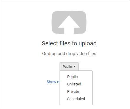 Du kan også laste opp videoer privat på YouTube hvis du ønsker det. Alternativet er ikke rett frem, så la oss forklare. Hvis du klikker på rullegardinmenyen som sier «Offentlig», ser du fire alternativer.