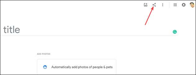 På neste skjerm vil du dele albumet med andre ved hjelp av e-postadressene deres. Du kan også opprette en delbar lenke og sende den til folk i stedet.