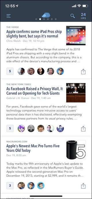Tilnærmingen Nuzzel tar er veldig forskjellig fra andre apper, fordi den ikke samler nyhetskilder som sådan. I stedet sporer den menneskene du følger på sosiale nettverk, og deretter vises linkene de snakker om. Jo flere folk snakker om en lenke, jo mer anses det å være viktig. Nuzzel viser deg lenken, samt alle menneskene du følger og snakker aktivt om den. Det gjør Nuzzel til en god innholdskilde fordi det betyr at du alltid vil se lenker som du normalt ikke vil komme over. Bonusen? Nuzzel er gratis.
