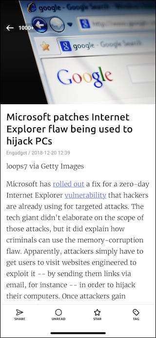 Det som gjør oss til så store fans av ulest, er det faktum at det er en god, gammeldags RSS-leser i form av de tidlige App Store-dagene. Det kommer deg til innholdet du vil og kommer umiddelbart ut av veien slik at du kan gjøre det du dro dit for å gjøre: lese ord. For det formål er det mange temaer som endrer hvordan ulest ser ut, noe som gjør det perfekt for tinkerene der ute.
