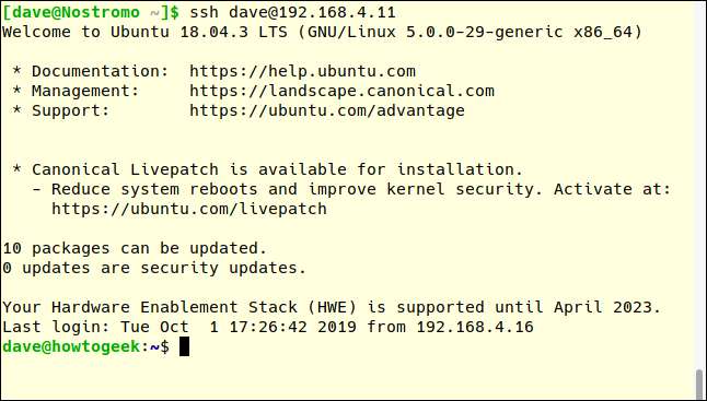 La oss sjekke at den nye innstillingen vår er i kraft. Vi hopper over til en annen maskin og prøver å SSH på testmaskinen vår. Og vi bruker
