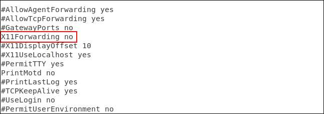 Bla gjennom filen til du ser linjen som begynner med "# X11Videresendingsnr." Fjern hasjen