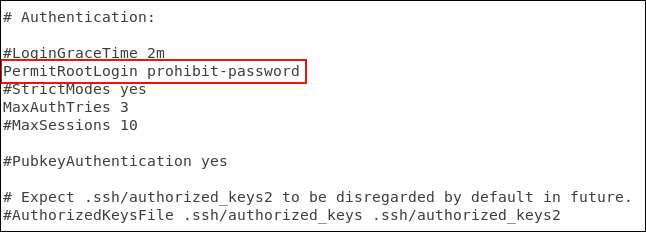 - Hvis du skal tillate root å logge på, men tvinge dem til å bruke SSH-nøkler, må du la "prohibit-password" være på plass.