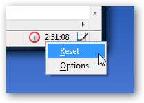 Hvis du høyreklikker på klokken, får du en meny der du enkelt kan tilbakestille tidtakeren eller komme til alternativssiden.